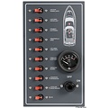 Dit bedieningspaneel met stroomonderbrekers is een professioneel, waterdicht schakel- en controlepaneel, ideaal voor maritieme en mobiele toepassingen. Het paneel is uitgerust met 10 afzonderlijke schakelaars, elk voorzien van een gescheiden zekering en volautomatische Airpax-stroomonderbrekers (15A).